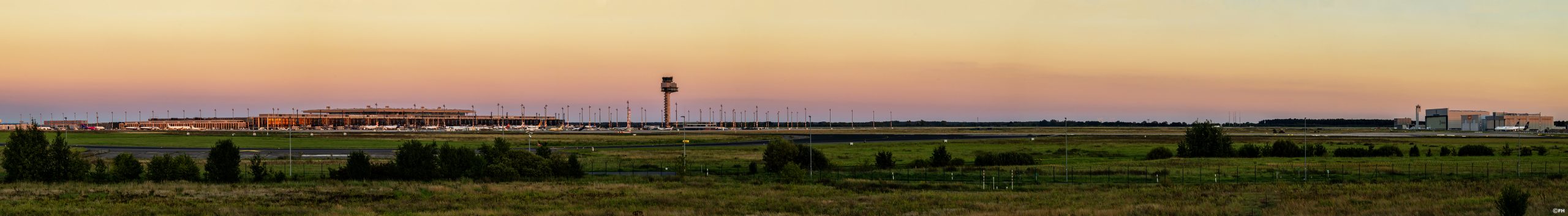Berlin Airport BER Super Breitbild Panorama im Sonnenuntergang
