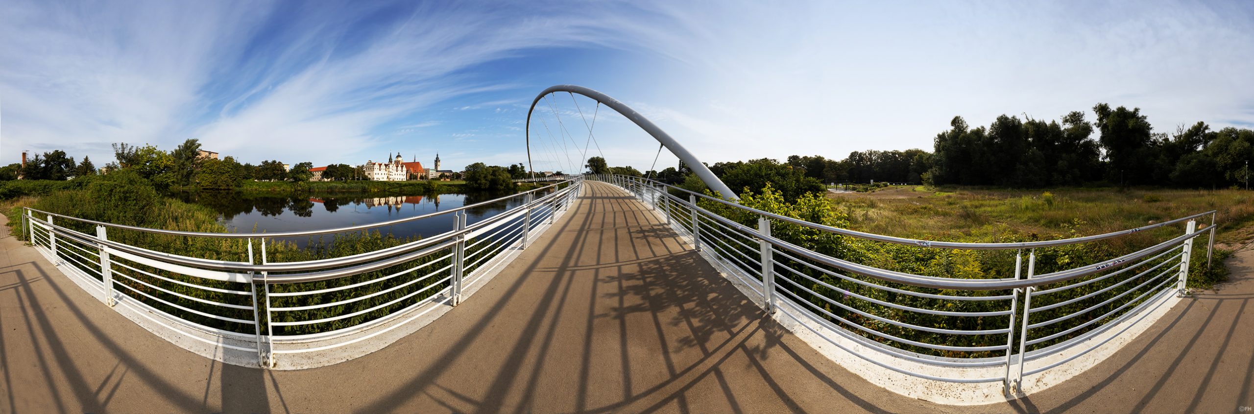 Dessau Tiergartenbrücke Panorama mit Altstadt-Skyline – auch bei Tageslicht 😉 Wer mag für den gibt es das hier natürlich auch zur blauen Stunde oder HIER und HIER als Nicht-nur-Panorama, weil tatsächlich nicht jeder den Panorama-Effekt mag 😉